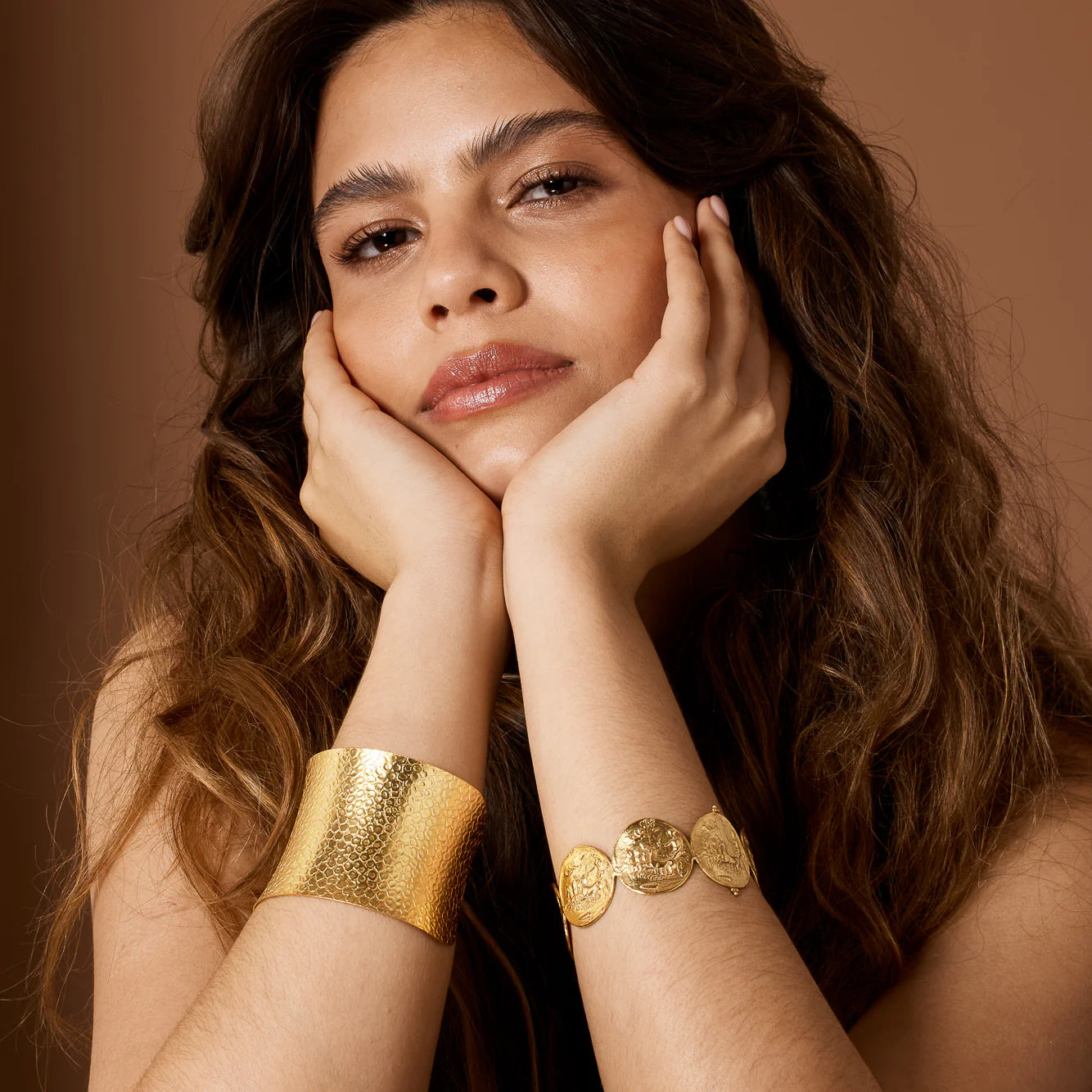 Greek mythology inspired coin cuff in gold